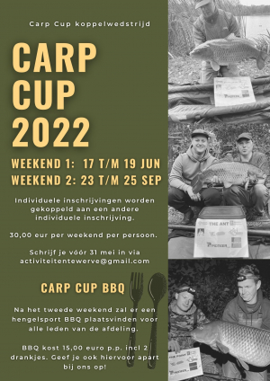 Het is weer zover! De Carp Cup staat weer voor dit jaar op de planning. Geef je snel op want vol=vol